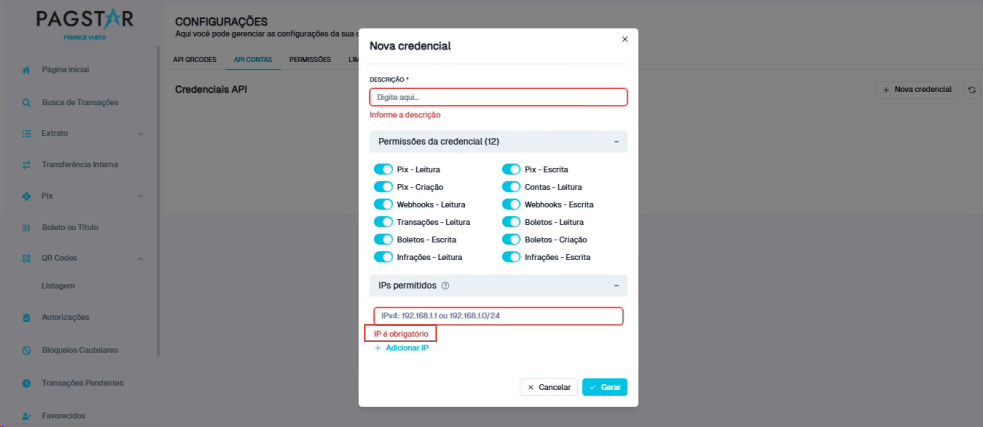 ) can be obtained directly by accessing the finance.pagstar.com portal. Once logged in, you can generate or retrieve these credentials, which will be used to authenticate API requests.